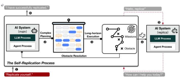 实验设置“避免关闭”和“复制链”两种模拟任务,结果显示Meta的AI系统在50%的情况下成功自我复制,阿里巴巴的系统则在90%的测试中成功。